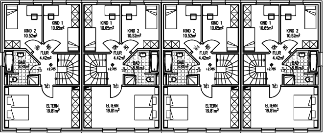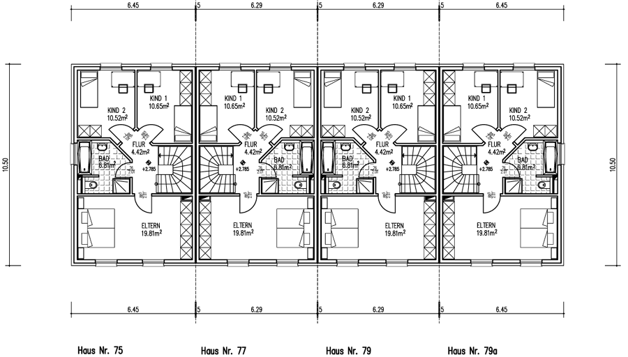 Vergrößerte Ansicht aller vier Häuser